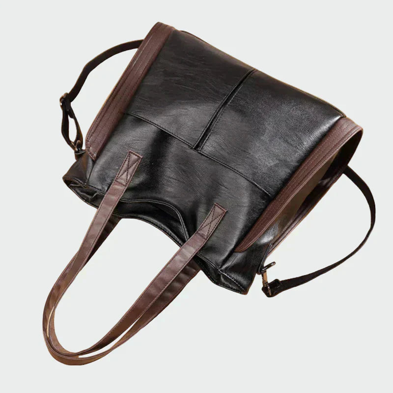 Elegáns válltáska fekete színben, barna részletekkel, amelyek örök jelleget és egyedi kontrasztot kölcsönöznek. Tágas dizájnja kényelmet és praktikusságot kínál a mindennapi használatra, míg a levehető hosszú pánt lehetővé teszi a keresztben való hordást is. Olyan kiegészítő, amely ötvözi a stílust és a funkcionalitást, ideális az irodába és elegáns casual megjelenésekhez.