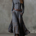 Az testhezálló felső fém gombokkal kiemeli a sziluettet, míg a folyó szoknya patchwork részletei dinamizmust és bájt adnak minden lépésnél. Egy ruha, amelyet szabad léleknek és a megkülönböztetést kedvelő nőknek terveztek.