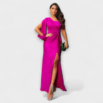 • Kifinomult dekoltázs és finom anyag struktúra – Mélységet és luxus megjelenést kölcsönöz a ruhának