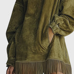 Lépj be a könnyed elegancia világába a Sheri – Kényelmes Frufru Ruhával — ahol a puha kényelem találkozik a modern, nyugati ihletésű stílussal.