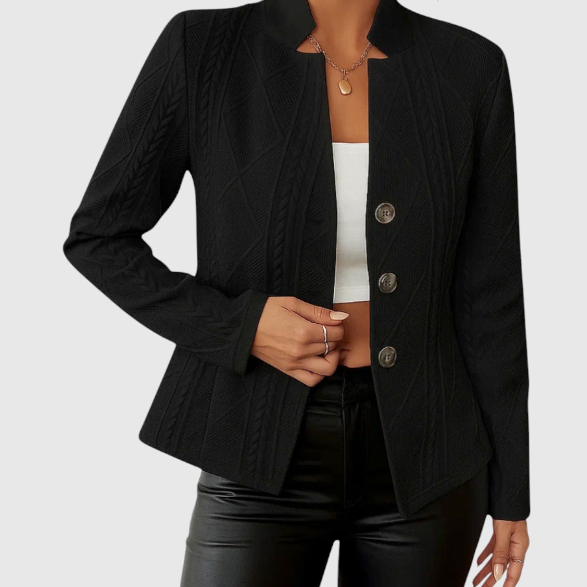 Az Alexis klasszikus blézer a diszkrét elegancia választása. Ez egy olyan darab, amely azonnal ragyogást ad az outfitedhez, miközben egész nap kényelmesen és magabiztosan tart.