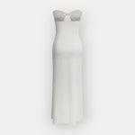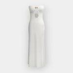 Elegáns és légies, ez a pánt nélküli ruha diszkrét eleganciával hangsúlyozza a nőiességet. Ideális napos napokra és nyári estékre, stílusban és kényelemben.