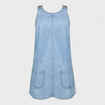 A Sophie ruha úgy lett tervezve, hogy természetes könnyedséget, praktikus szabást és időtlen farmer megjelenést kínáljon. Az ing stílusú gombos kivitel és enyhén rugalmas anyag biztosítja a kényelmes viseletet, míg a térd fölé érő laza szabás kompromisszumok nélküli kényelmet nyújt. Ideális választás azokhoz a napokhoz, amikor egyszerű, de elegáns modellt keres, amely városi és szabadidős viseletre is alkalmas.