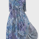 Hosszú ruha levendula és kék árnyalatokban a színes mintázat frissességet hoz, míg a könnyed kivitelezés tökéletes tavaszi és nyári alkalmakra.