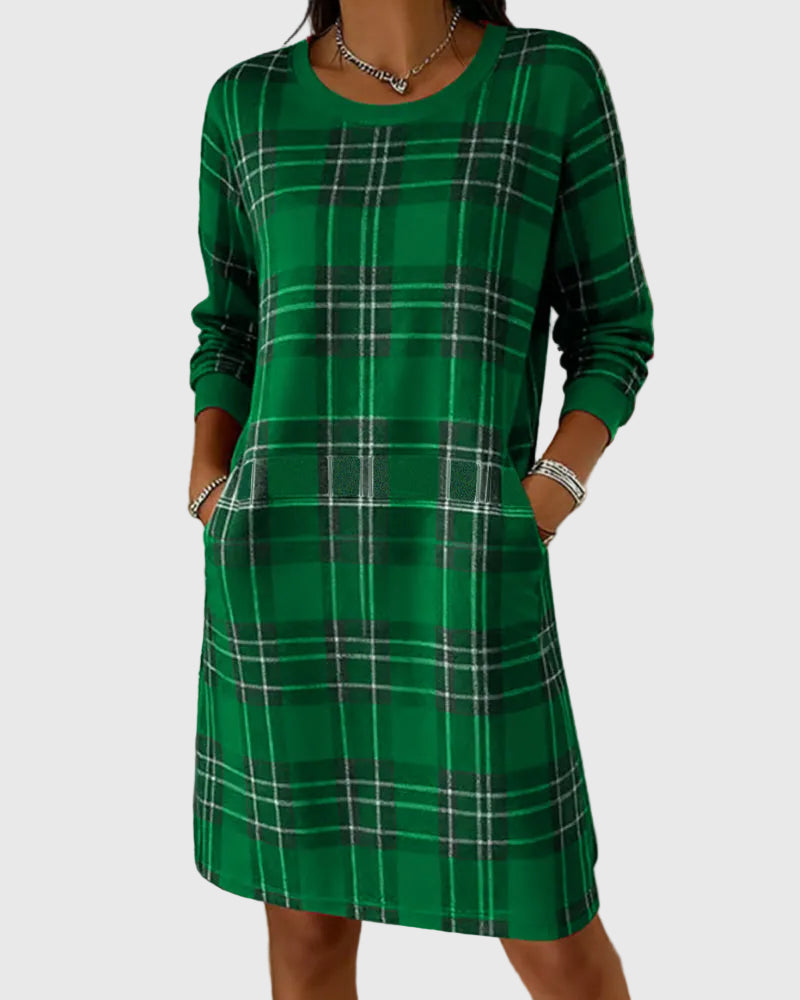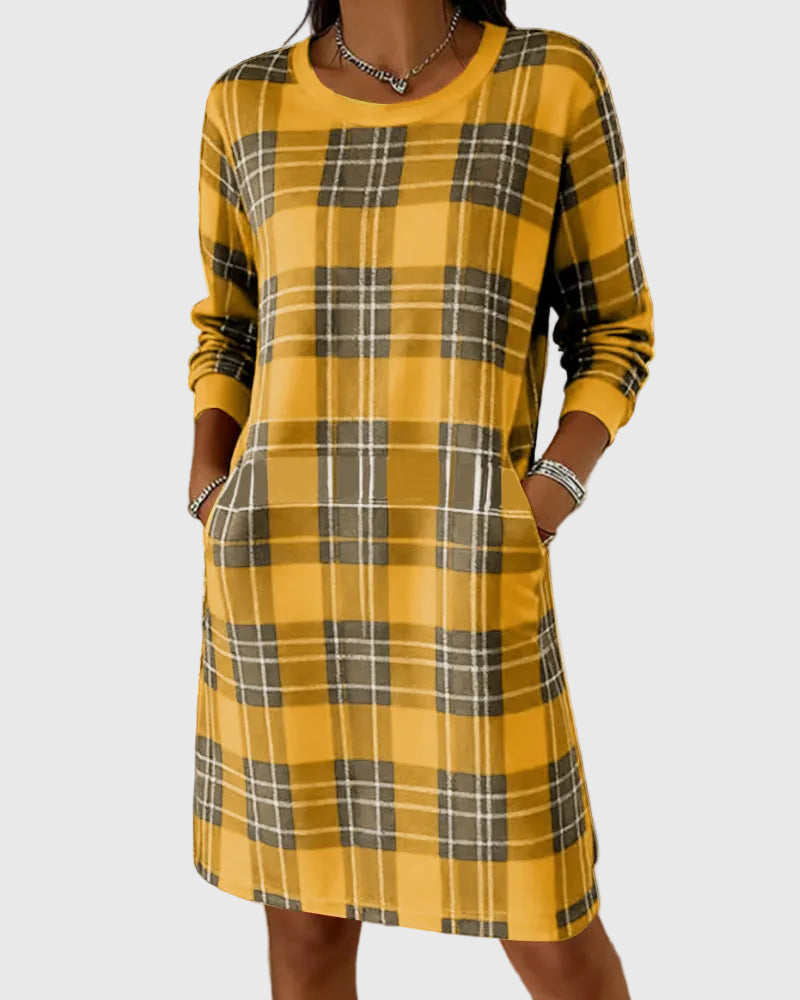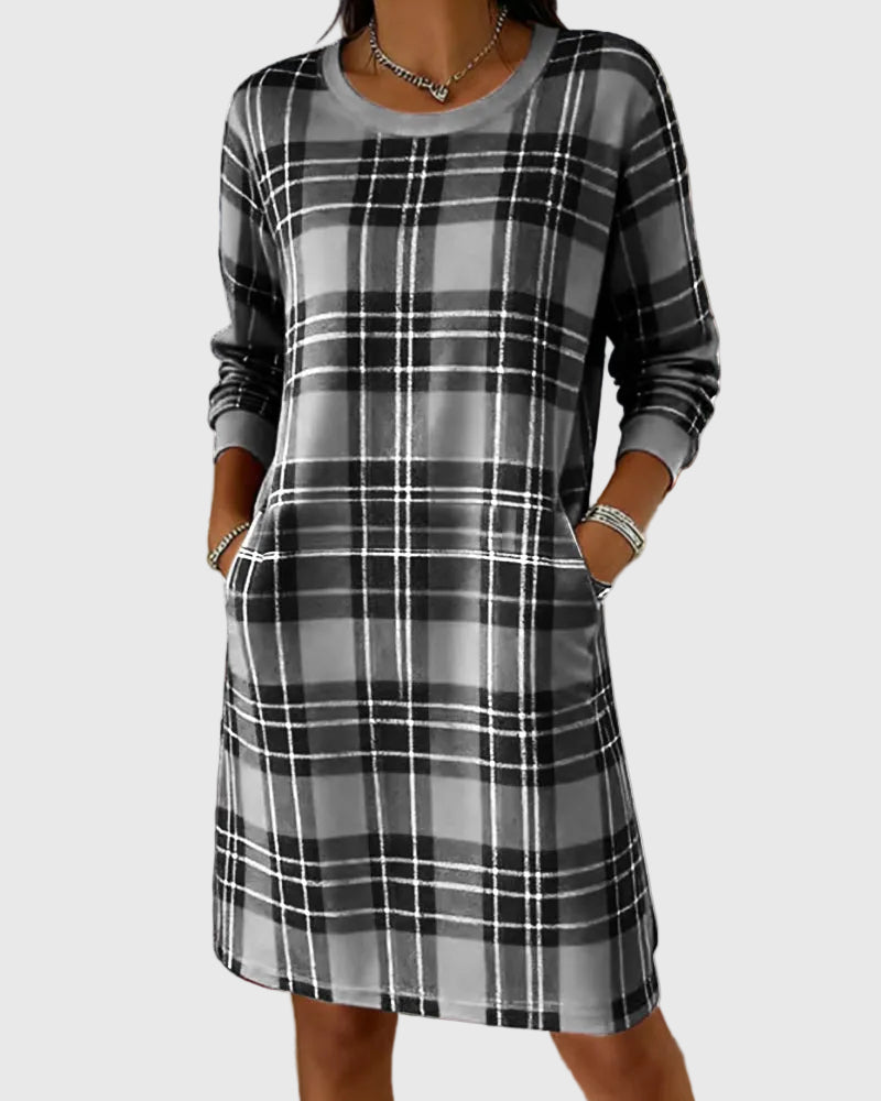 Az Eloise ruha a puha, meleg sweatshirt-anyag kényelmét ötvözi az időtálló kockás mintával, így egy laza, mégis igényes sziluettet teremt. Tökéletes hűvös reggelekre, hétköznapi programokra vagy otthoni, meghitt délutánokra — ideális egyensúlyt kínál kényelem, melegség és természetes elegancia között.